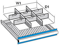 抽屜四周鑲有糟片,每隔17cm有一(yī)糟蹋,可配合隔板分隔抽屜空間(jiān).